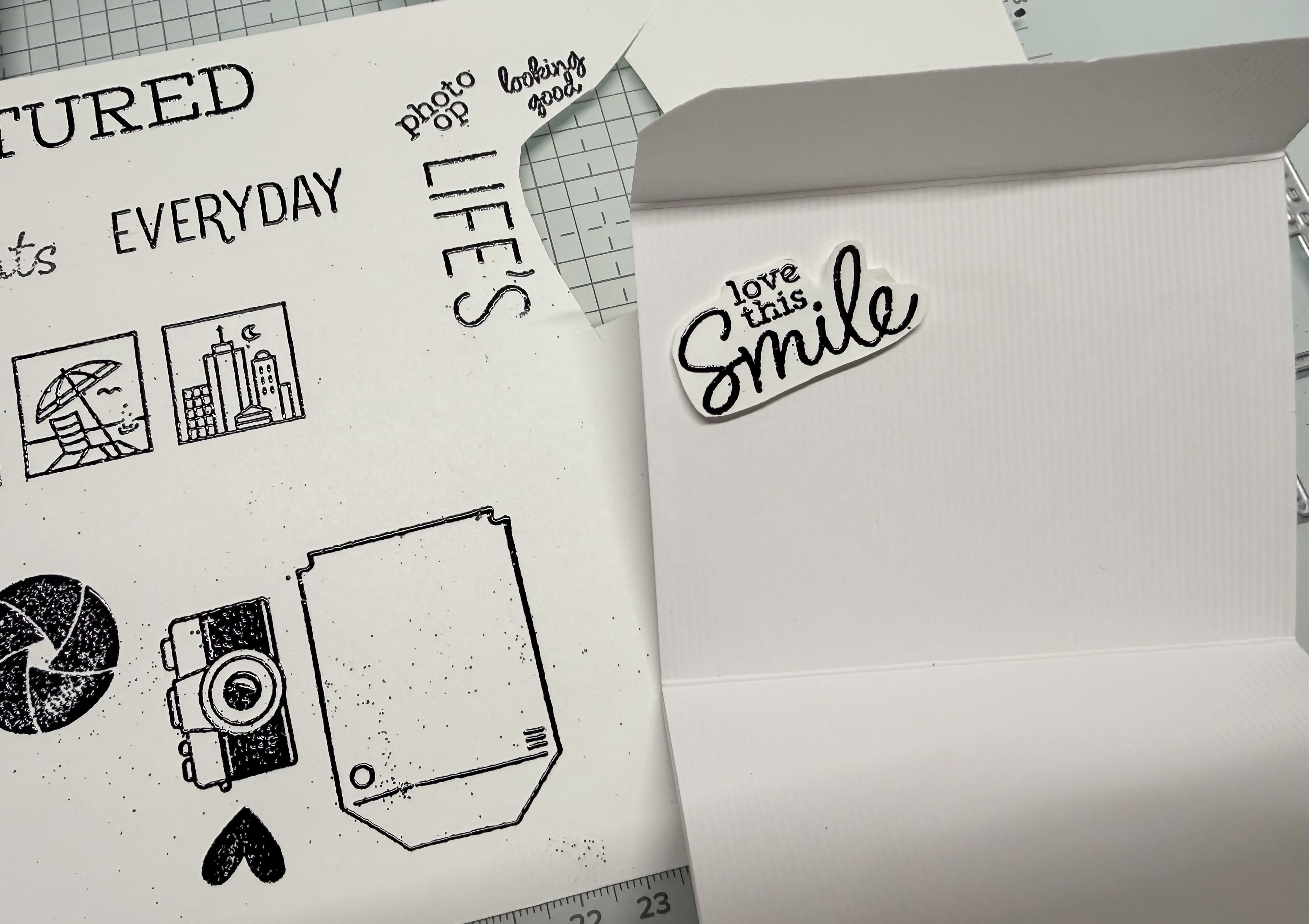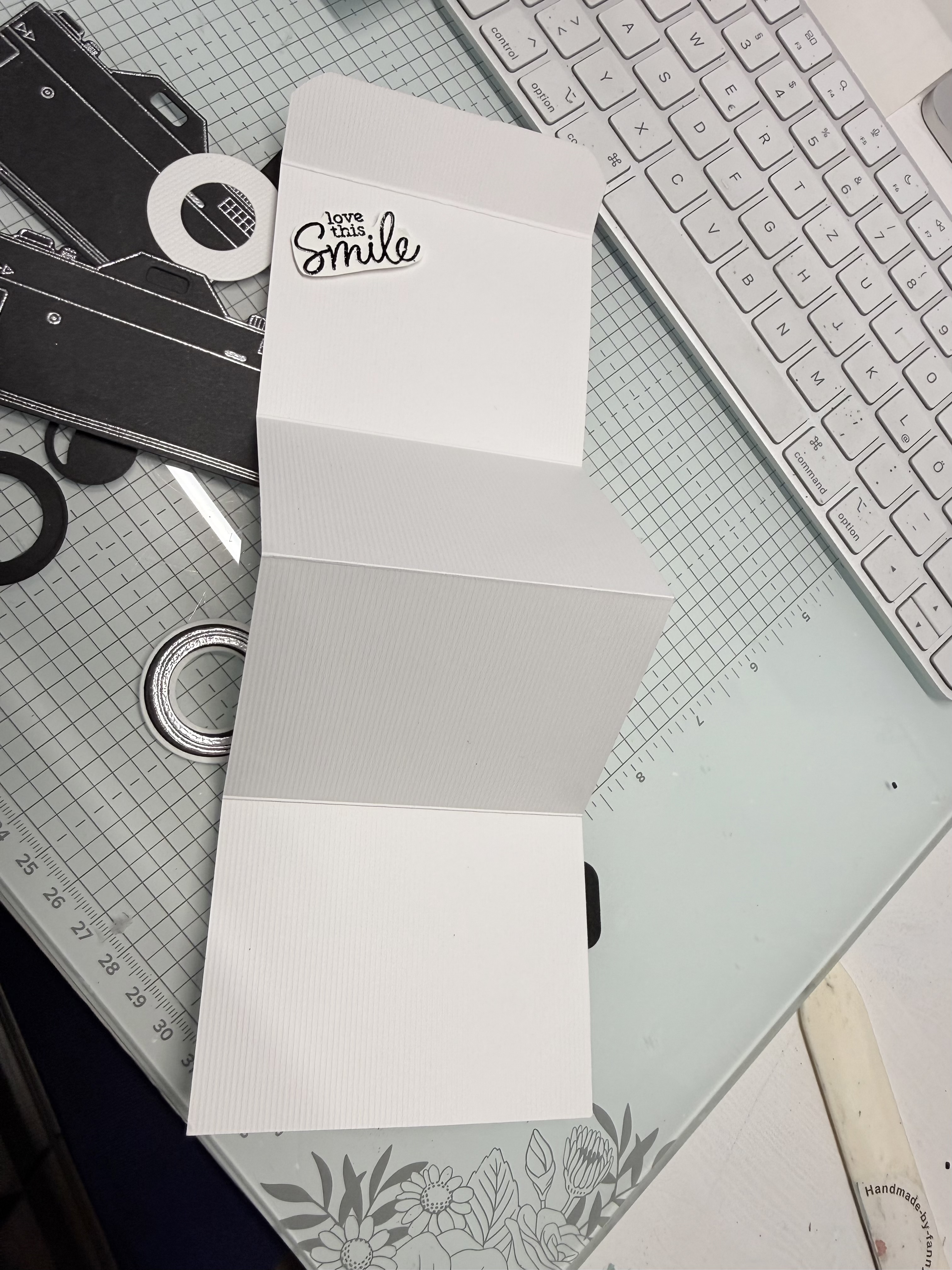 I Stamped and Embossed with Silver Wow Embossing powder, the Words that I will decorate the inside with, are black embossing on white paper.